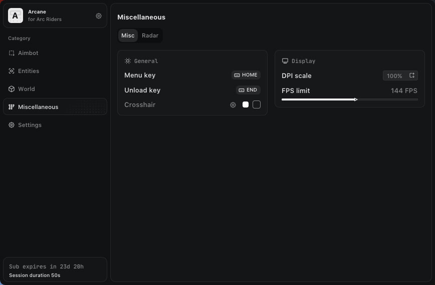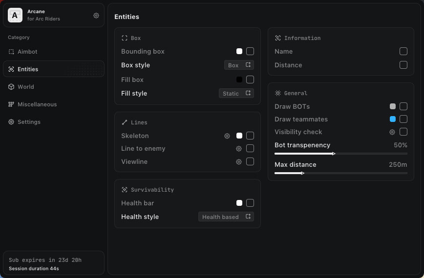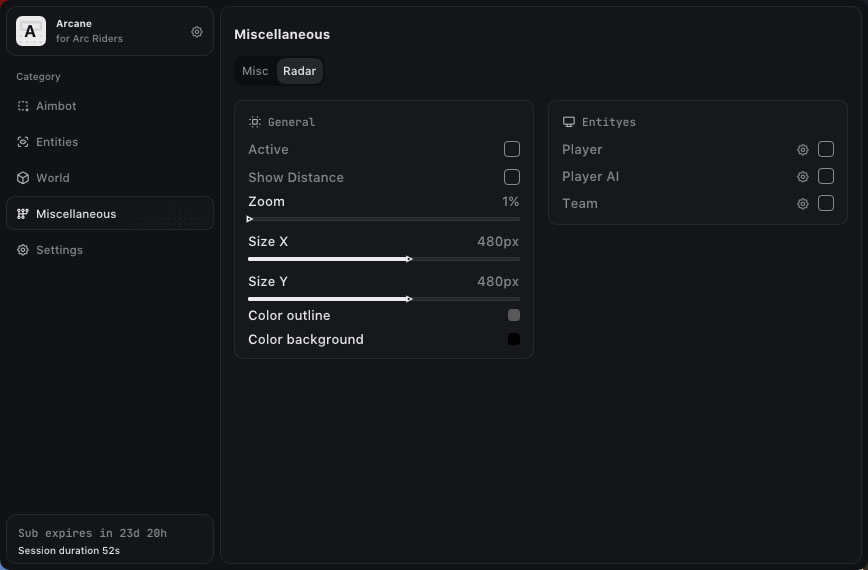 Arcane сочетает в себе три основных направления: точный AimBot, информативный ESP и гибкий радар. Такое сочетание делает его эффективным инструментом как для одиночных игроков, так и для командной игры, где важно видеть всё происходящее заранее.
