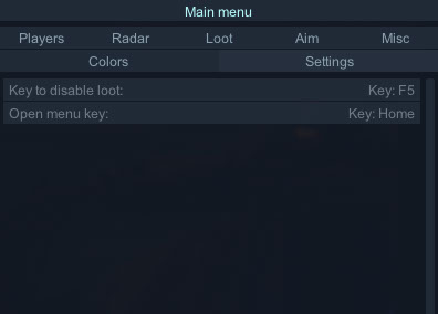Open menu key / Установить клавишу для открытия и закрытия меню чита в игре, по умолчанию используется клавиша "HOME"