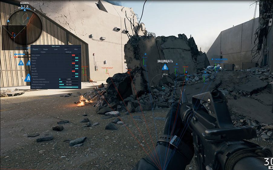 В чите есть все необходимые мощные функции для комфортной игры. Как минимум - будете знать точное местоположение противника. Как максимум наведете прицел точно в заданную часть тела противника. Останется только забрать долгожданный фраг. Приятным дополнением является наличие радара, благодаря которому никто не уйдет от вашего внимания. У него простой запуск и установка. В случае возникновения трудностей - всегда сможем помочь и ответить на возникающие вопросы.