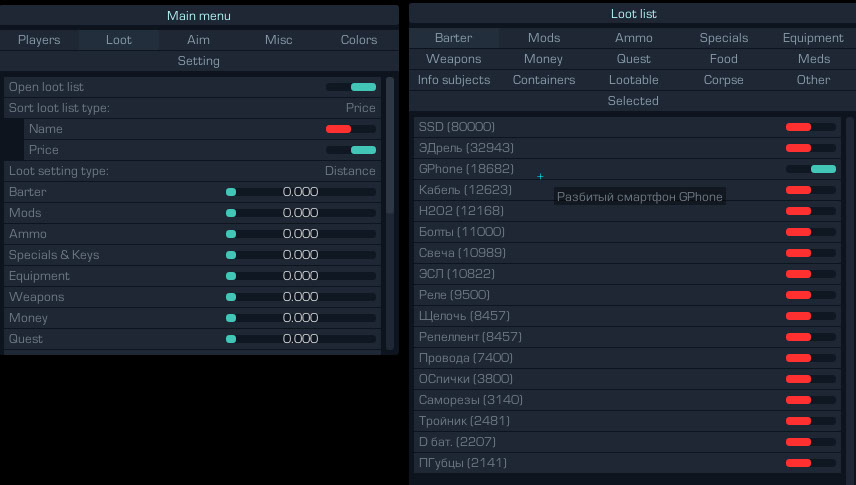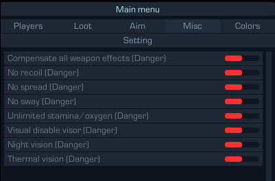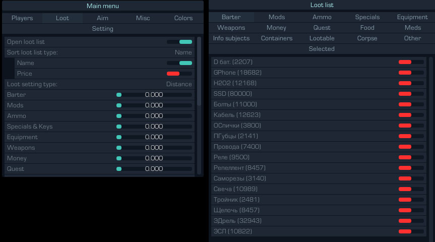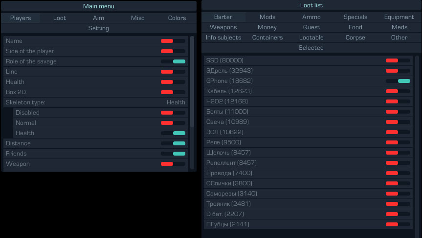 Представляю вашему вниманию качественный приватный чит для игры EFT от надёжной команды разработчиков Crooked Arms. Программисты отличаются своей стабильностью, регулярно выпускают доработки своих продуктов и своевременно обновляют читы. Программа включили в себе все наработки прошлых лет, современный обход античита и уникальный способ защиты от блокировки аккаунтов. В софт включили всевозможные функции, которые позволят вам качественно доминировать и побеждать в игре.