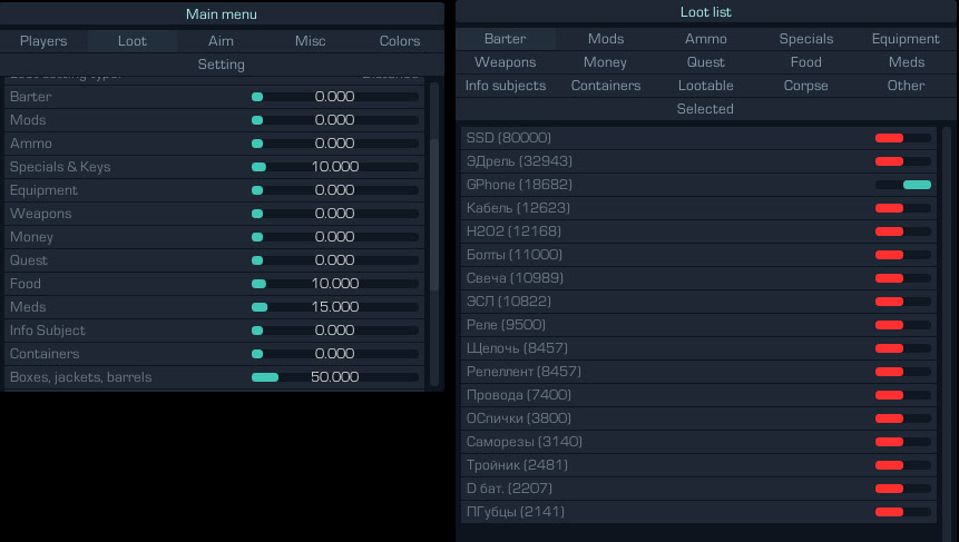 Search selected loot on players (искать выбранный лут в луте игрока)