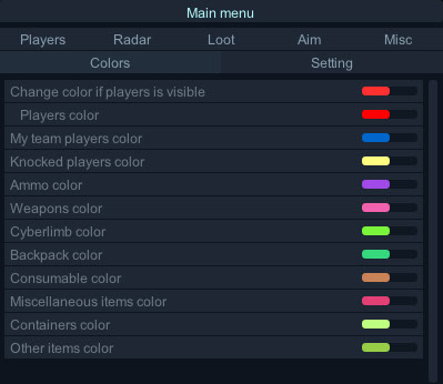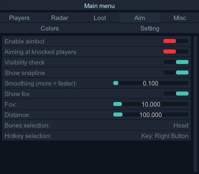 Hotkey selection / Установить клавишу для активации аимбота, для работы аимбота установленную клавишу необходимо зажимать и удерживать