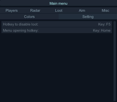 Menu opening hotkey / Установить клавишу для открытия и закрытия меню чита в игре, по умолчанию используется клавиша "HOME"