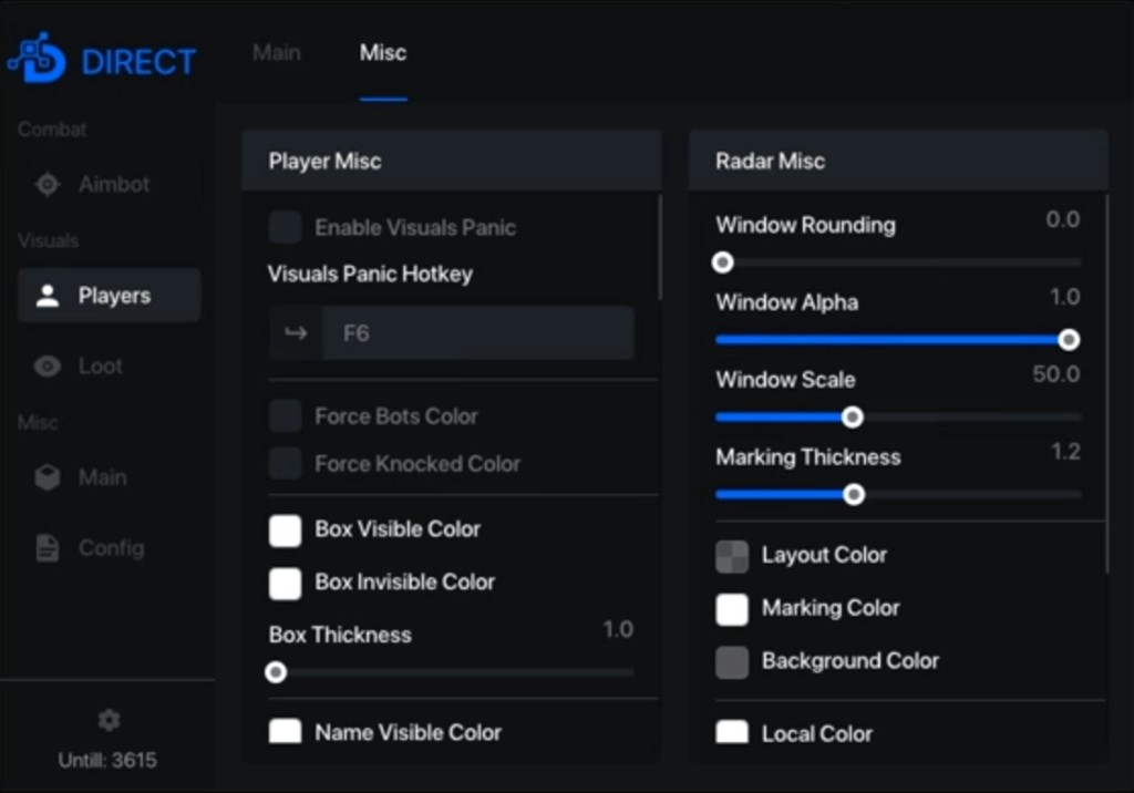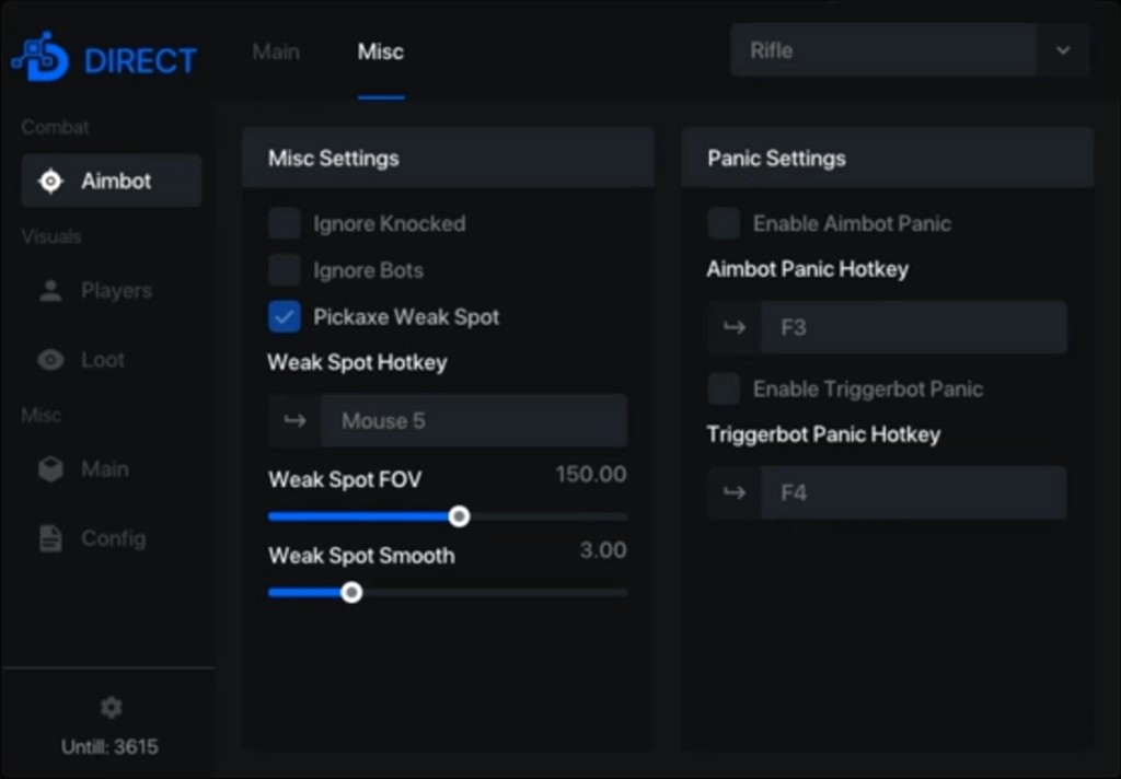 - Panic Settings — Aimbot Panic Hotkey, TriggerBot Panic Hotkey
