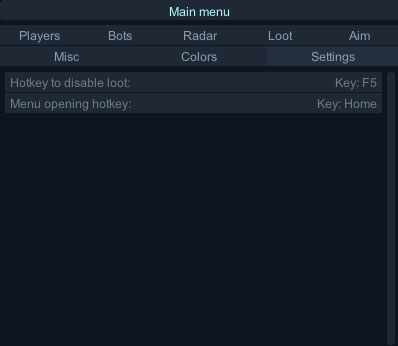 Menu opening hotkey / Установить клавишу для открытия и закрытия меню чита в игре, по умолчанию используется клавиша "HOME"