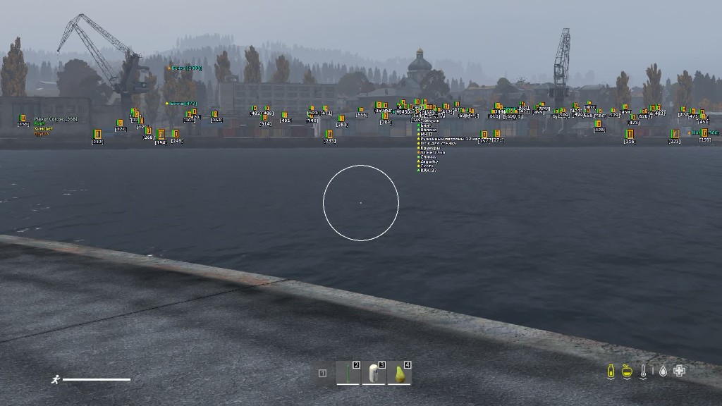 - Health, name, distance, view direction, item in hands