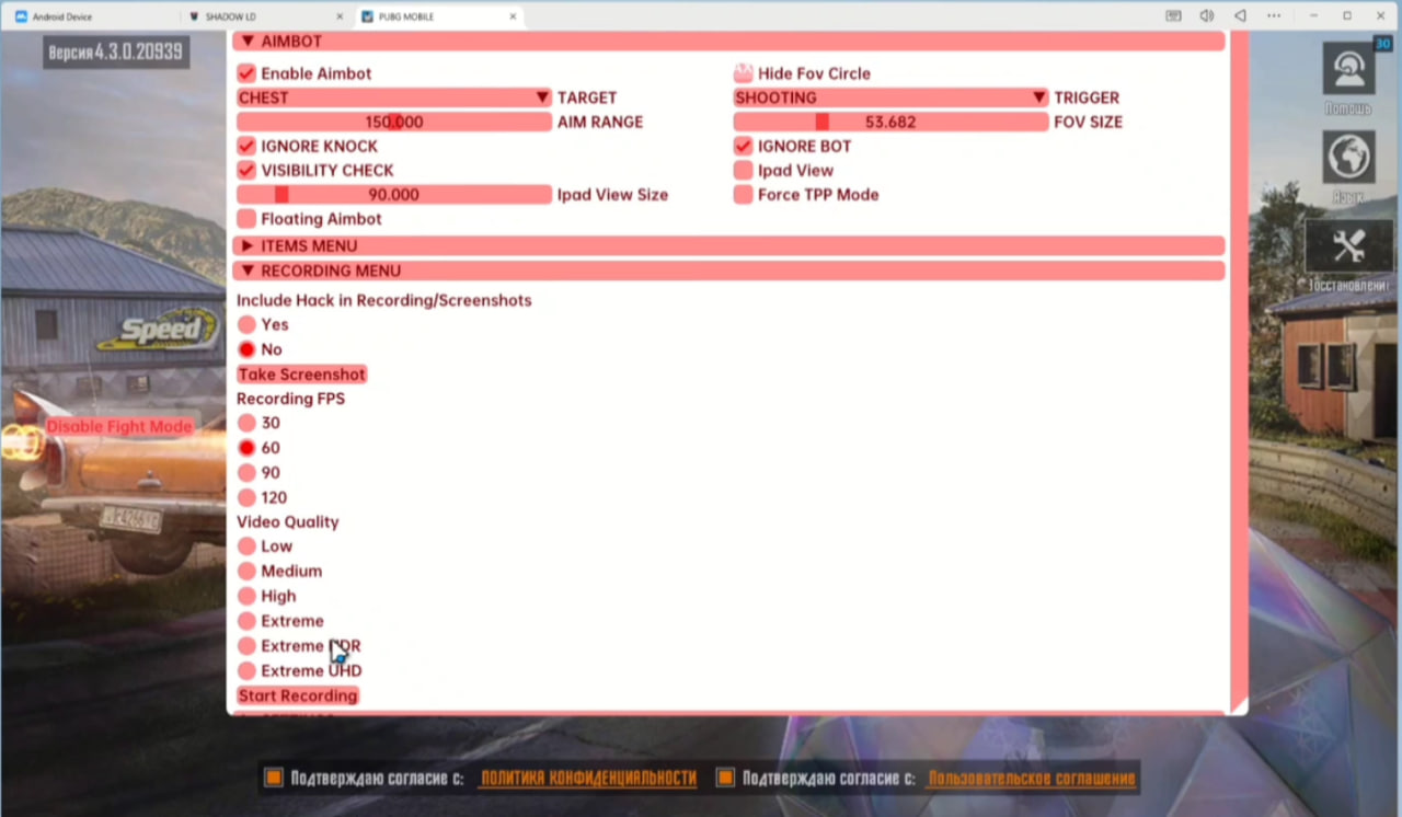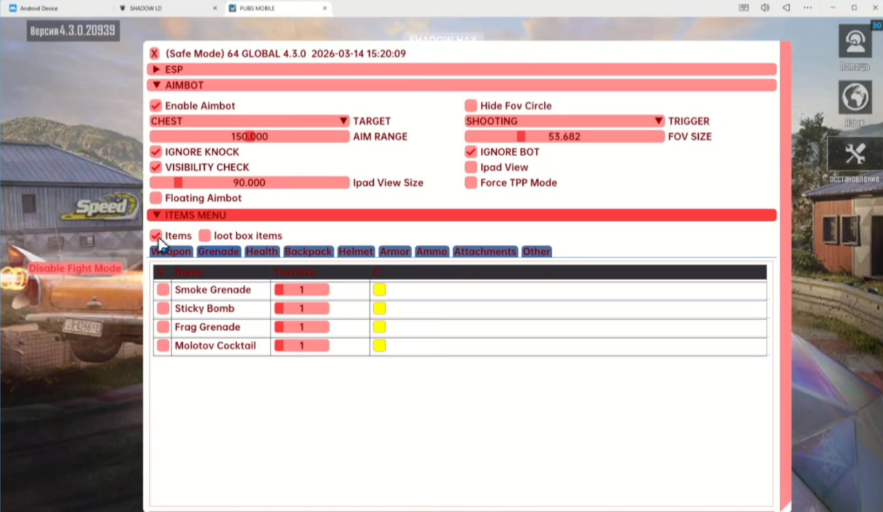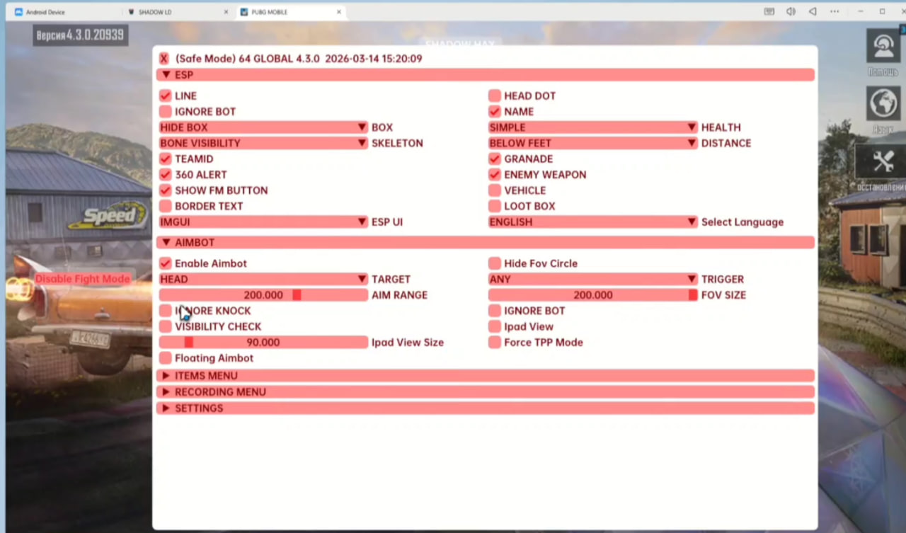 Acheter Working Shadow Cheat pour PUBG Mobile avec le contournement de l'émulateur MuMu / LD / BlueStacks