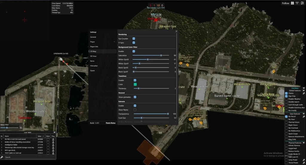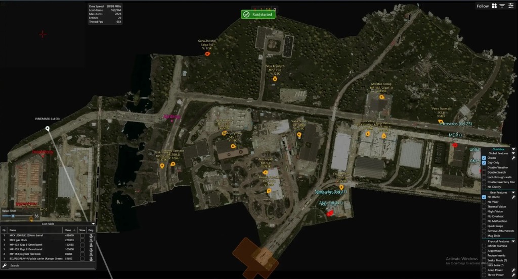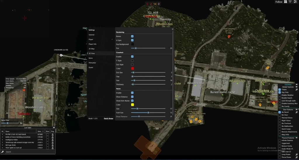 Clutch EFT Radar DMA: un radar DMA privato per Escape From Tarkov, in esecuzione su un secondo computer tramite una scheda DMA. Fornisce una visione completa del campo di battaglia: radar 2D con tutte le mappe, radar delle missioni con zone, oggetti e descrizioni, ESP 3D (ossa, oggetti, mirino), visualizzazione degli estratti aperti. Il sistema di avviso mostra quando vieni preso di mira e l'indicatore del colpo mostra il danno inflitto. Grazie alla tecnologia DMA, il cheat funziona completamente all'esterno del PC da gioco ed è invisibile all'anti-cheat di BattlEye. Sistema flessibile di filtro degli articoli con prezzi, ricerca ed evidenziazione, gestore di configurazione con funzionalità di importazione/esportazione e controllo basato su browser da qualsiasi dispositivo.