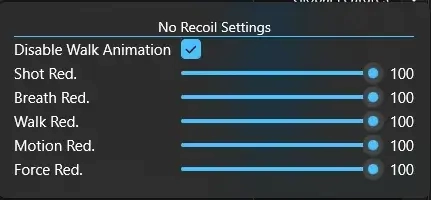 - Nessun rinculo (tiro/respiro/camminata/movimento/riduzione della forza 0–100%)