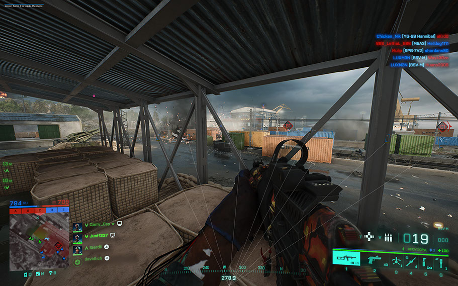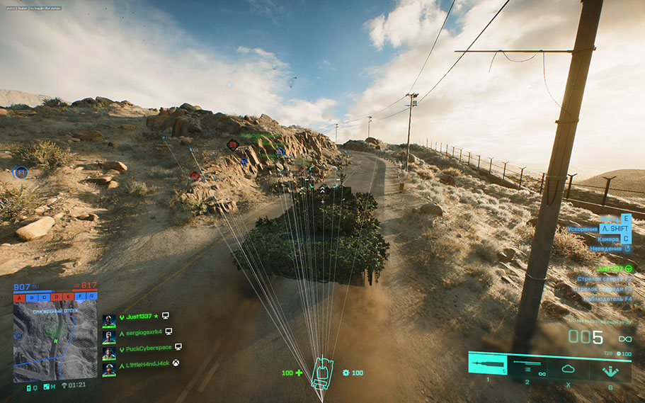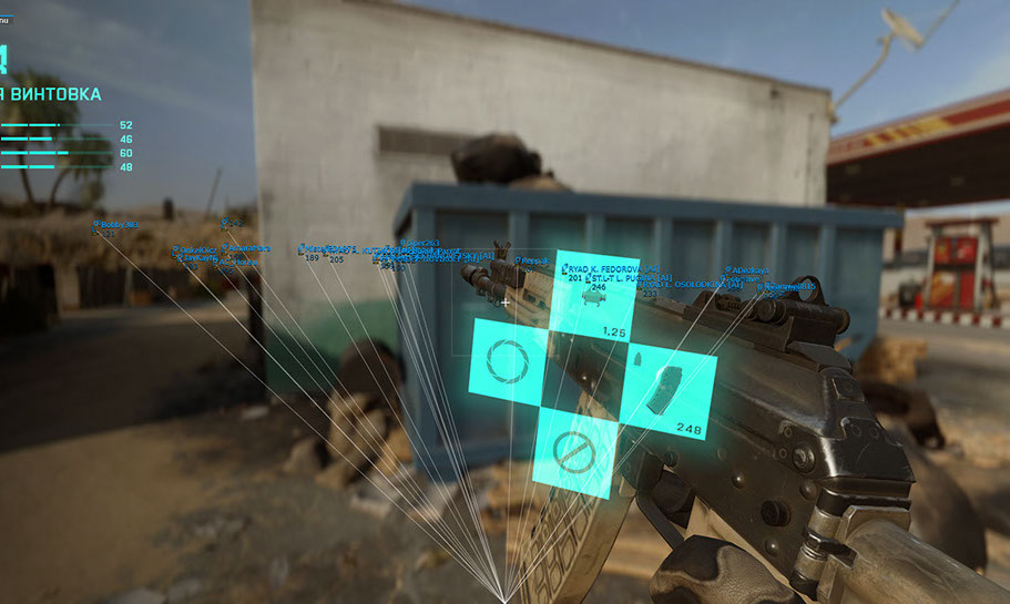 Visualization позволяет увидеть противников и технику на поле боя с помощью 2d квадратов, линий до игроков, индикаторов здоровья, никнеймов и дистанции. Это дает вам тактическое преимущество, обеспечивая видимость врагов и техники даже на больших расстояниях.