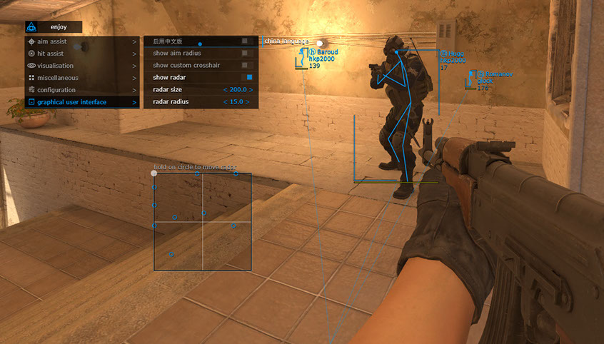 Show radar / Включить радар (перемещение радара по экрану производится путём наведения стрелки мыши на радар и зажатие ЛКМ)