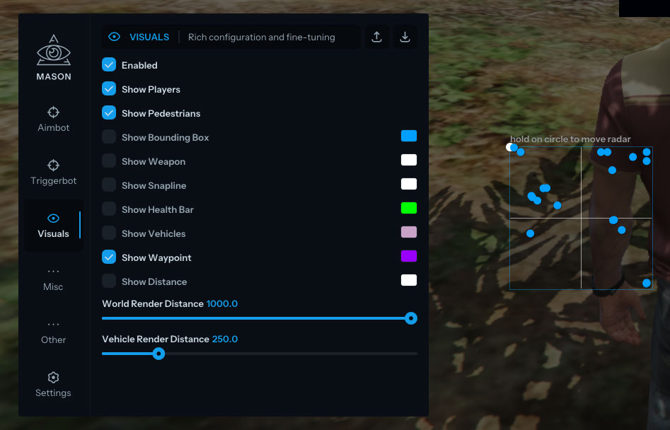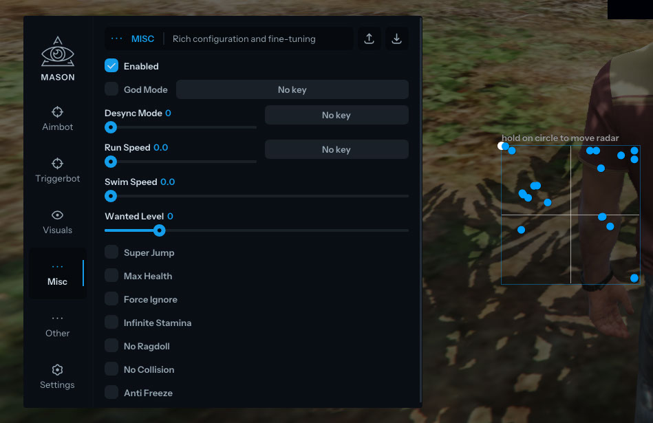 Ищете стабильный и мощный чит для RP-серверов GTA 5? Представляем Mason — современное решение с богатым функционалом и полной совместимостью с клиентами RageMP, Majestic, GTA5RP и Alt:V.