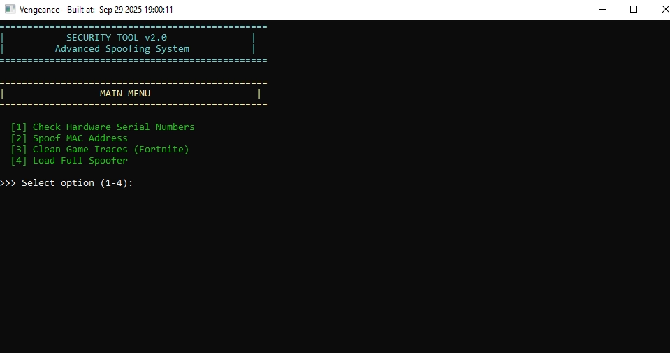 Vengeance Spoofer é uma ferramenta universal para alterar identificadores de hardware, projetada para contornar proibições de HWID em jogos com anti-cheats EAC, BattleEye, Ricochet e ACE.