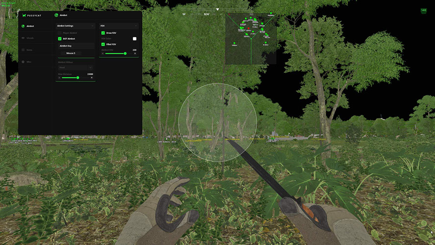 Узнаете точное местоположение благодаря Wallhack. Множество вспомогаетльных возможностей, таких как радар, оторажение контейнеров, ускорение бега и прочие.
