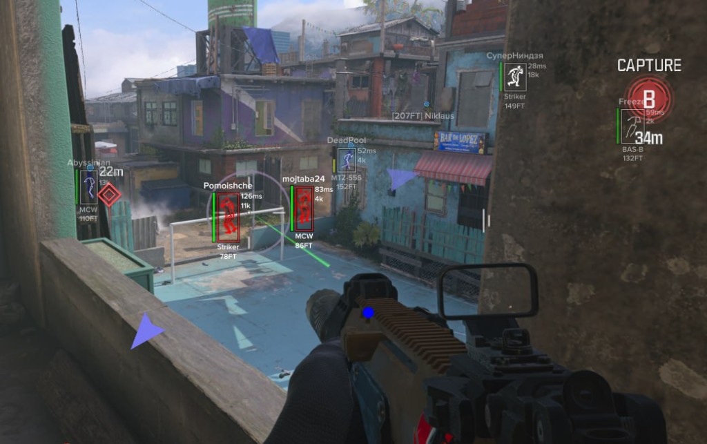 - Информация об игроке: ник, дистанция, оружие, пинг, убийства, ранг.