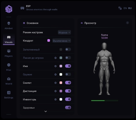 Особенность — гибкий Aimbot: выбирайте между внешним режимом Kmbox, встроенным автоаимом или пассивным статичным режимом. Настраиваемый радиус FOV, скорость наведения и выбор костей делают стрельбу максимально точной. Софт прост в использовании и работает стабильно на всех версиях DayZ.