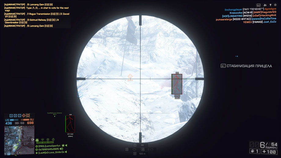 Aimbot работает только по видимым целям — не стреляет сквозь стены и препятствия.