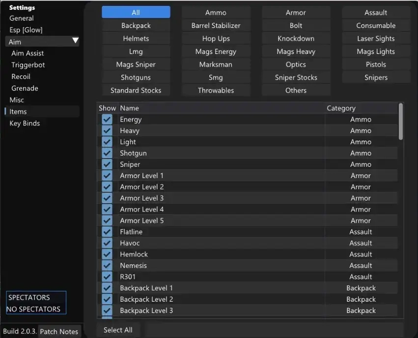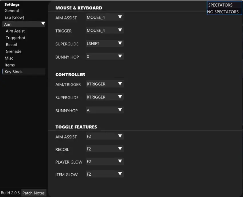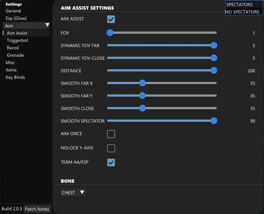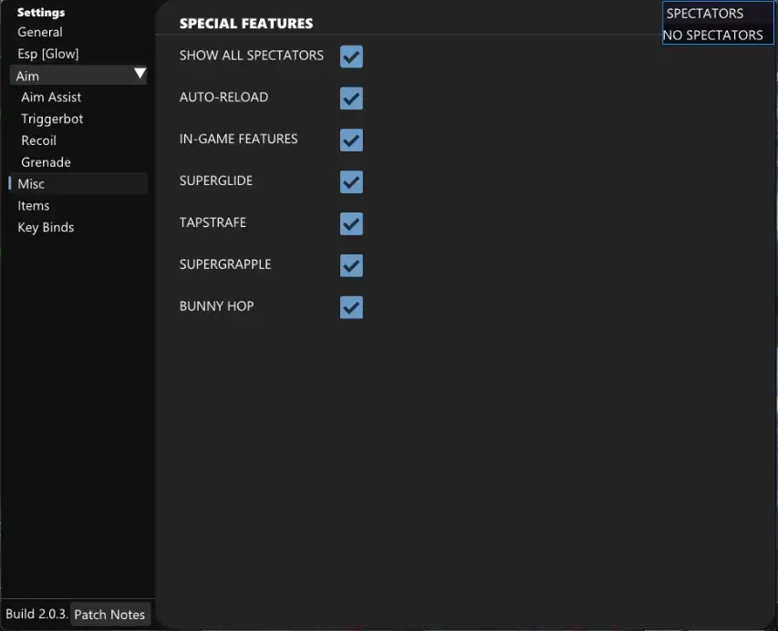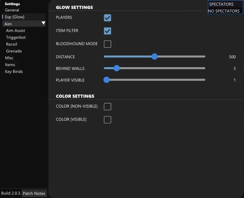 Apex Legends için yüksek kaliteli DMA hilesi Clutch — size oyunda üstünlük sağlayarak savaş alanını etkili bir şekilde kontrol etmenize ve rakiplerinize üstünlük sağlamanıza olanak tanır. DMA teknolojisi maksimum hesap koruması ve güvenli bir oyun deneyimi sağlar. Otomatik kemik değiştirme özelliğine sahip tam özellikli bir aimbot, silah özelleştirmeli tetikleme robotu, Oyuncu ve Eşya ESP Glow, Geri Tepme Yok ve özel özellikler (Superglide, Tapstrafe, Supergrapple, Bunny Hop) içerir. Fareyi ve denetleyiciyi destekler, içe/dışa aktarma ve yerleşik radar özelliklerine sahip esnek bir yapılandırma sistemine sahiptir.