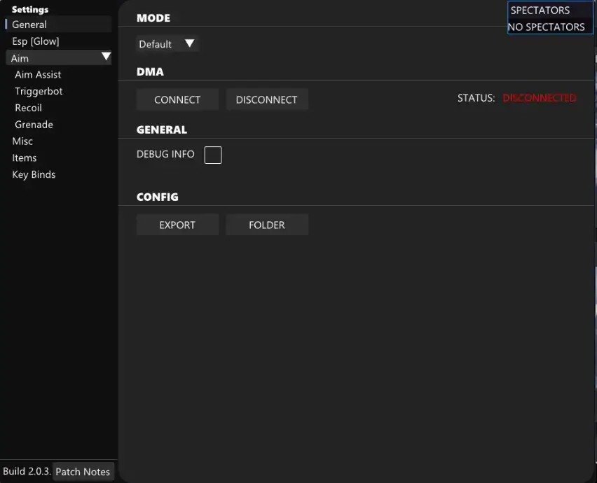 Bu yazılım gerektirir: DMA kartı (PCIe slot), ikinci PC (radar), maskeleme firmware'i, KmBox (aimbot için).