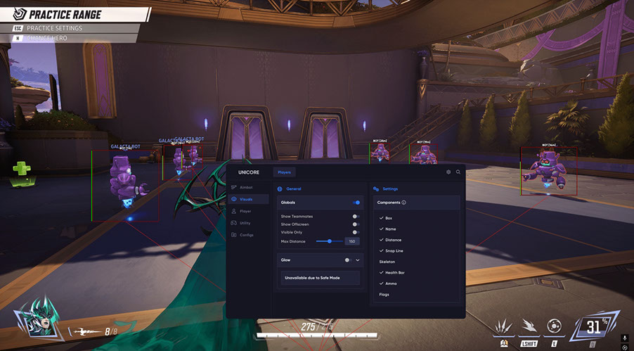 Откройте двери к новым возможностям с приватным читом Unicore для Marvel Rivals! Наслаждайтесь мощным функционалом, включая аимбот с индивидуальными настройками для каждого персонажа, игнорированием союзников и зрительной проверкой. С Player ESP вы всегда будете на шаг впереди: отслеживайте врагов, их здоровье и боеприпасы с помощью интуитивно понятных визуальных эффектов. Улучшайте игровой процесс с помощью настройки угла обзора и фильтров изображения. Погружайтесь в игру на новом уровне — выберите Unicore и станьте мастером Marvel Rivals!