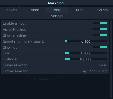 Hotkey selection / Установить клавишу для работы аимбота, выбранную клавишу необходимо зажимать и удерживать